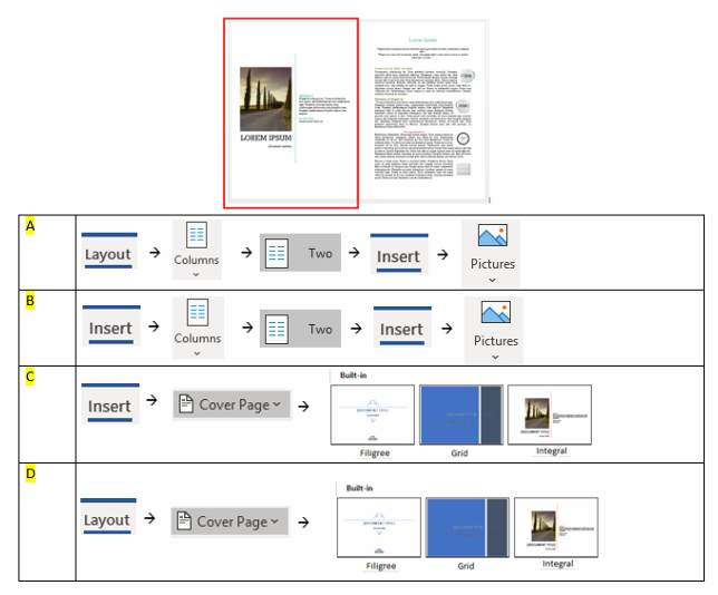 Q11. The document below consist of 2 pages. How do you create the content on the left page (boxed in RED)?