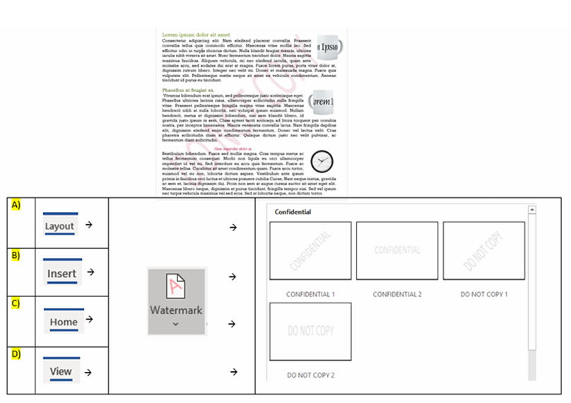 Q12. How do you create the red “DO NOT COPY”, as shown in the document below?\