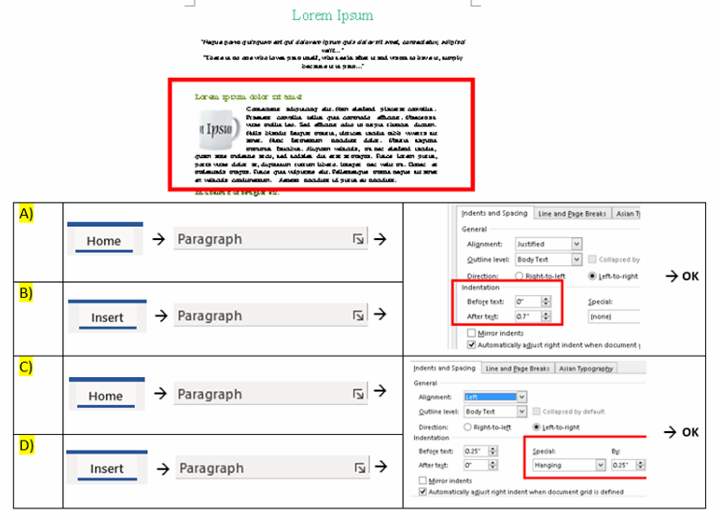 Q15. How do you create the paragraph boxed in RED for the 1-page document below?