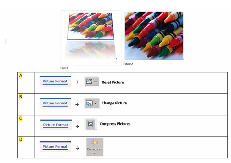 Q29. You have applied some effects to the picture shown Figure 1. How do you remove all the effects as shown in Figure 2?