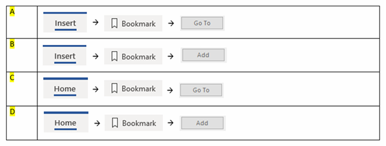 Q39. There are a couple of bookmarks in this document. How do you create these bookmarks?